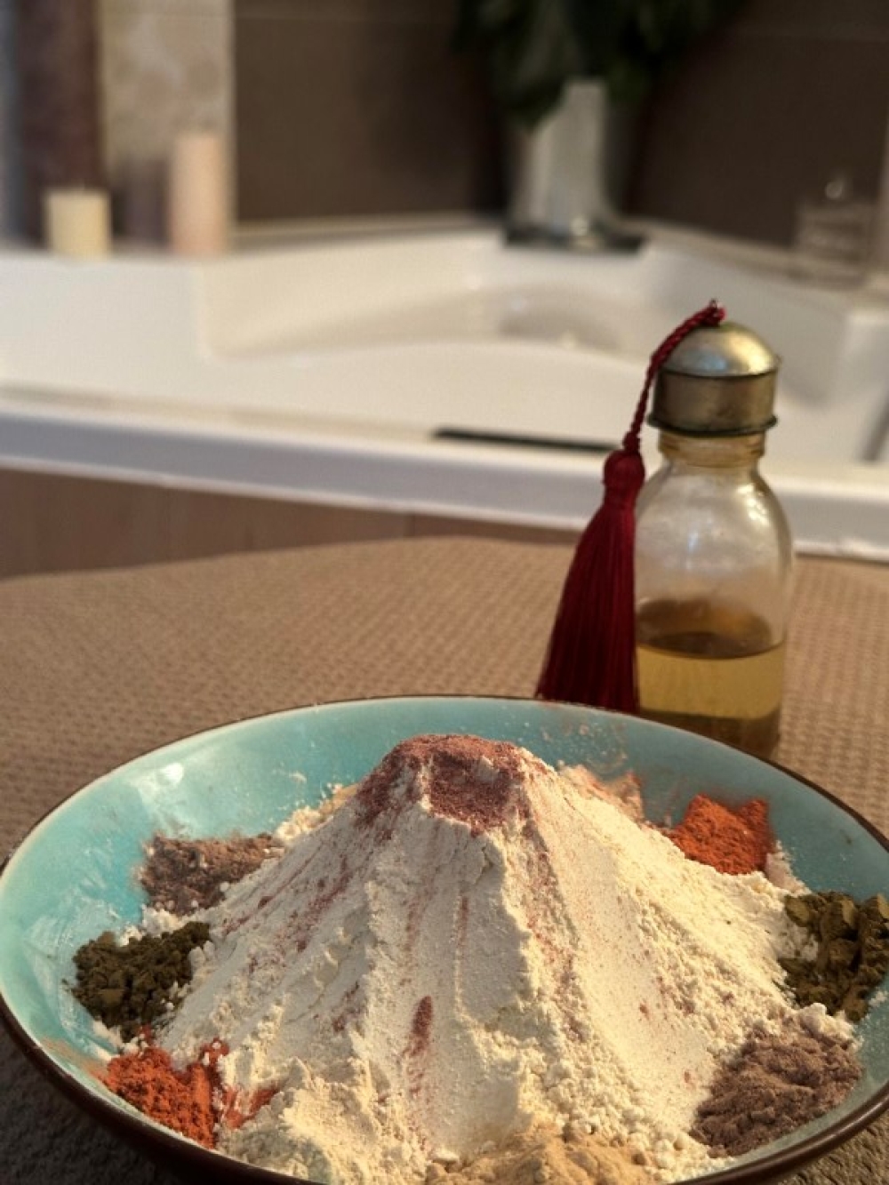 L'Udvartana combine les techniques du massage ayurvédique avec les propriétés exfoliantes de la poudre de pois chiches, de plantes et d'épices.